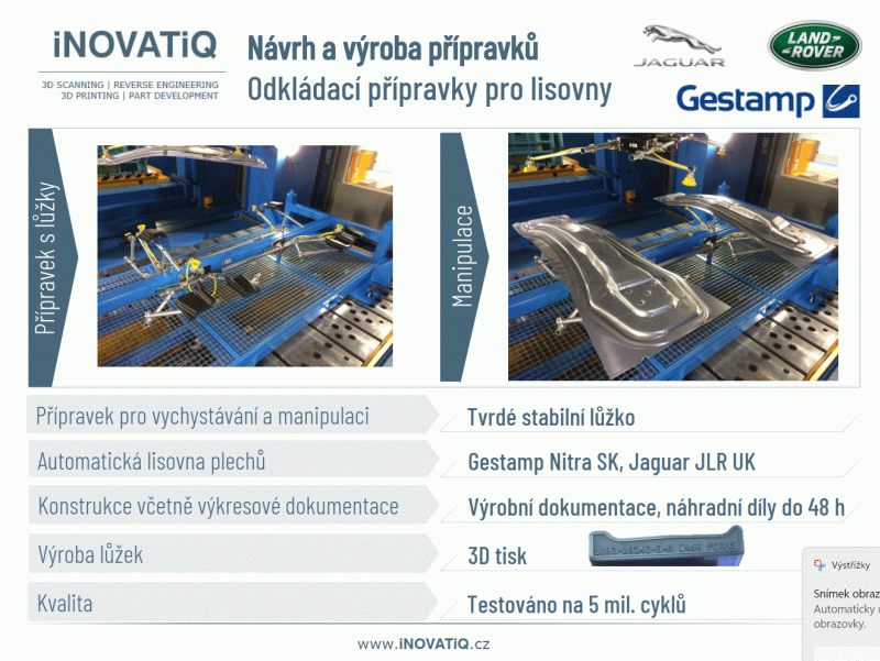 - Tvarové odložky při manipulaci v lisovnách plechů a plastů, centrovací stanice, ustavovací přípravky, ruční montáže, ruční lisování, lisovny, upínání, podkládání, montážní podložky a lůžka, automatizační technika