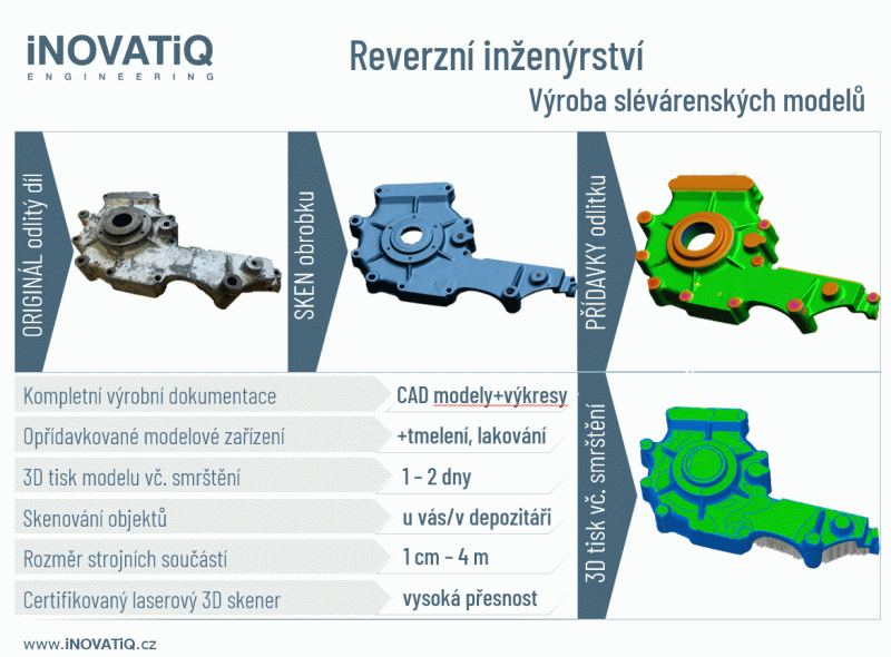 - Chybějící modelové zařízení odlitku, chybějící výrobní dokumentace dílů vyráběných z odlitků, zkrácení proluk mezi návrhem a odléváním